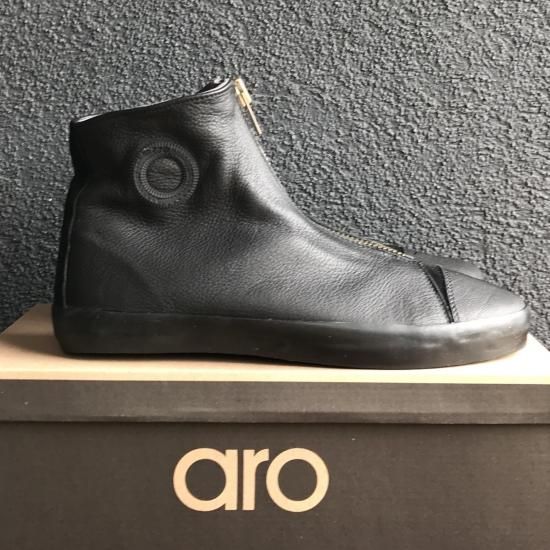 レザー(一部スエード)、ラバーソールで丁寧に作られている印象で、フロントジッパー(YKK)が機能美デザインに仕上がっております。aro(アロ)ブランドのロゴマーク(ゴムのような素材)が踝あたりの両側にしっかりと縫い付けられ、アウターソールは波型が刻まれているので滑りにくく、インナーソールは着脱可能となります。