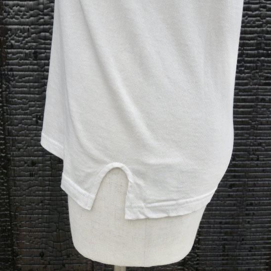 オープンエンドコットンを原料に編み上げたクルーネック(丸首)のTシャツです。オープンエンド機で紡績された糸を使用し、肌に触れた時にまとわりつかず、且つ高い吸水性も持ち合わせています。また、ヴィンテージのディテールのひとつであるフリーダムスリーブ仕様や、サイドに縫製のない丸胴ボディを採用しているため、ストレスなく着用していただけます。また、ホワイト以外の3色は、硫化の無回転染めを施しています。そのため、カラー製品のそれぞれに柔らかい独特のムラが存在します。