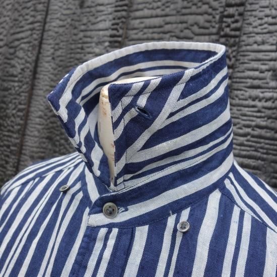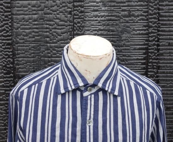 Nigel Cabourn "BRITISH OFFICER'S SHIRT-LINEN HICKORY" Dark Navy