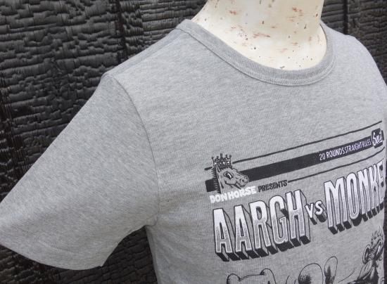 ベルリンを拠点としているア−ティスト、AARGH&MONKEY。彼らは1999年にコラボレ−ションを始め、2011年に正式なコラボレ−ションプロジェクトとしてPRINTSHOP UNIONを立ち上げました。自身のウェブサイトで作品を発表し、またポスタ−やTシャツなどの販売も行っています。AARGHは映画でモンスタ−役などを演じたことがあり、またMONKEYは元CBSテレビクル−であるという異色の経歴の持ち主です。彼らの作品はポップカルチャ−、コミック、コンピュ−タ−や映画など、様々なものをパラフレ−ズしています。シルクスクリ−ンを用いて刷られたポスタ−やキャンバス、インスタレ−ション、映像、オブジェ、ゲ−ムなど、彼らの作品は多岐に渡っています。ほとんどの作品にはヒッチコック、猿の惑星、ゴジラ、アメリカの漫画家のマット・グレイニングやジム・フィリップスの要素が盛り込まれています。そんな彼らのデザインプリントがセンターを飾る良質な綿100%のTシャツです。脇部分の縫い目を持たない丸胴ボディ仕様で、きめ細かい着心地に優れ、長く着ることを前提とした物づくりは、本プリントとも長くお付き合いできる配慮も忘れません。