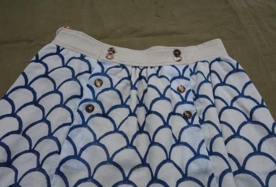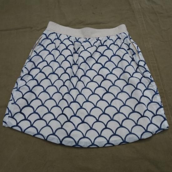 DECK SKIRTは裏返しになっており、アメリカ海軍のセイラーズパンツをフェミニンにしたものです。ジャイプル(インド)で特別に開発されたハンドメイドのブロックプリント生地を使用しており最も古く時間のかかる織物の捺染方法です。フロントについているボタンには加工されていないシェルボタンがセットされています。ミニスカートの部類に入るかと思いますが、アレンジ次第で大変楽しめるアイテムでどことなく和も思わせる雰囲気も漂わせているのです。生成色の裏地があり、両サイドには縦ポケットが施されています。※ハンドメイドのブロックプリントは捺染方法なので、模様に色の濃淡、色ムラ、掠れ、僅かな滲み・色飛びなどが生じている場合がございます。これらもこの製品の特徴と捉えて楽しんでいただければ幸いです。