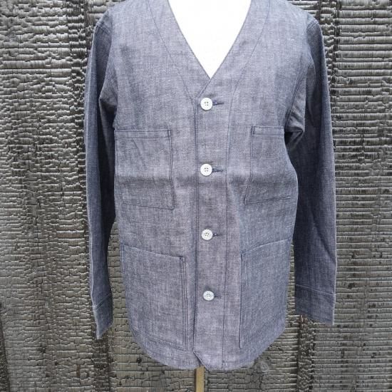 "V NECK DENIM JACKET(V ネック デニム ジャケット)- 8.0OZ JAPANESE DENIM"