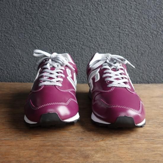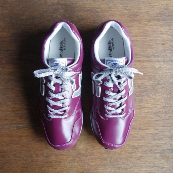 再販のご要望を多く頂いていた にゅ〜ず「パープル」。今回はバーガンディの様な深みのあるパープルに光沢ある素材感が大人の雰囲気を醸し出す一足となってます。パープルのアッパーにグレーのステッチがポイント。「にゅ」ロゴは光を反射するリフレクト素材を使用しており細かいところまでこだわり製作した「にゅ〜ず パープル」となります。