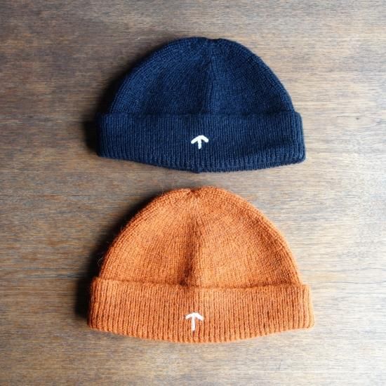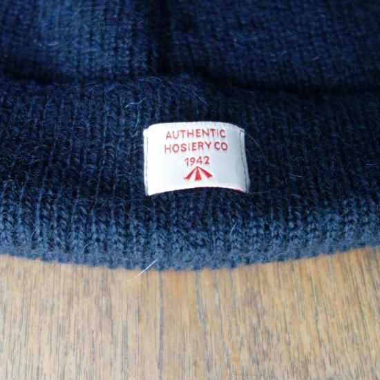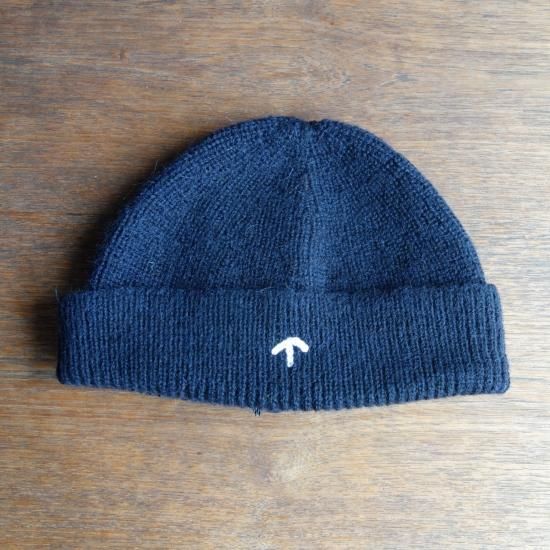 AUTHENTIC LINE(オーセンティック ライン)のビーニーキャップです。7ゲージで編まれたブリティシュウールで作られ、折り返すとBROAD ARROW(ブロード アロー)のレーベルと反対側には丁寧に刺繍(ブロード アロー)が施されています。