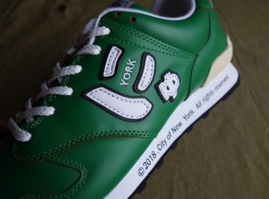 スニーカー文化に影響を与えた街「NEW YORK」と 靴工房サンガッチョ の「遊び心」が融合した限定コラボスニーカー「にゅYORK」マンハッタンのセントラルパークをイメージさせる緑色レザーを使い、90年代のビンテージスニーカーを意識した配色で製作。ロゴは「NEW YORK」と「にゅ」をリンクさせた「にゅYORK」、シュータンのロゴにセントラルパークのメインロゴが配置。また、ミッドソールへはニューヨークとのコラボを示すコピーライトが記載されるなど。。。靴工房サンガッチョ の「遊び心」を凝縮した一足です。