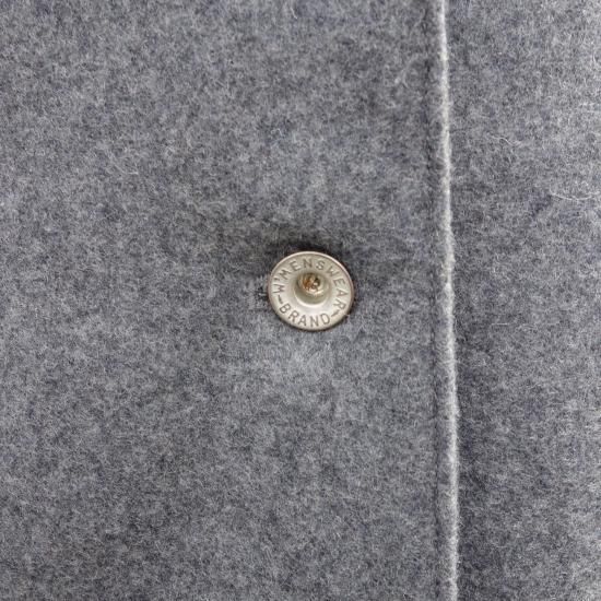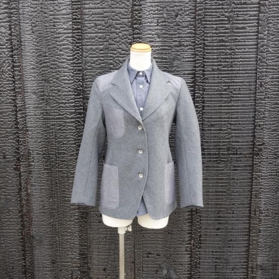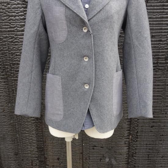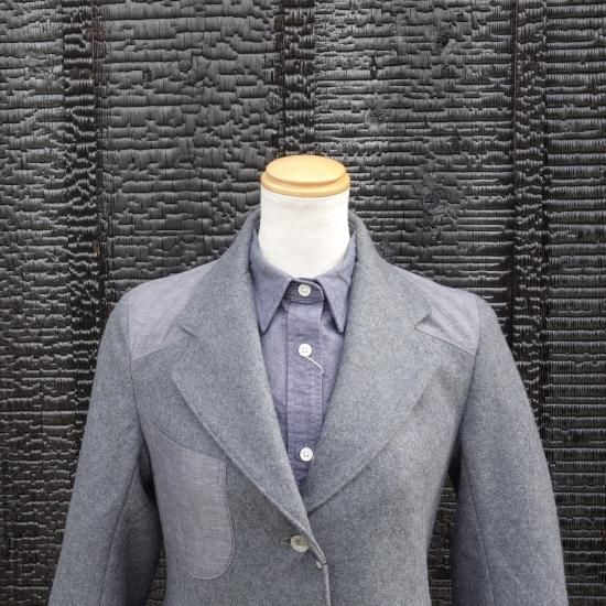3つボタンの襟付きのワーク ブレザーです。肩、肘には別布(綿100%素材)でパッチが充てられており、肘パッチは楕円(アーモンド型)をしております。前身頃の右胸、左右の下部、内ポケット(2つ)の計5つのポケットが配された、よく見ると遊び心を持ち合わせているブレザーでもあります。一見はパッチがうるさい様に思われがちですが、異素材で同系色なので、表情の豊かな割に見た目よりすっきりと着こなしていただけます。何かと合わせやすいライトグレーの色味はあらゆるシーンでの活躍が期待できます。