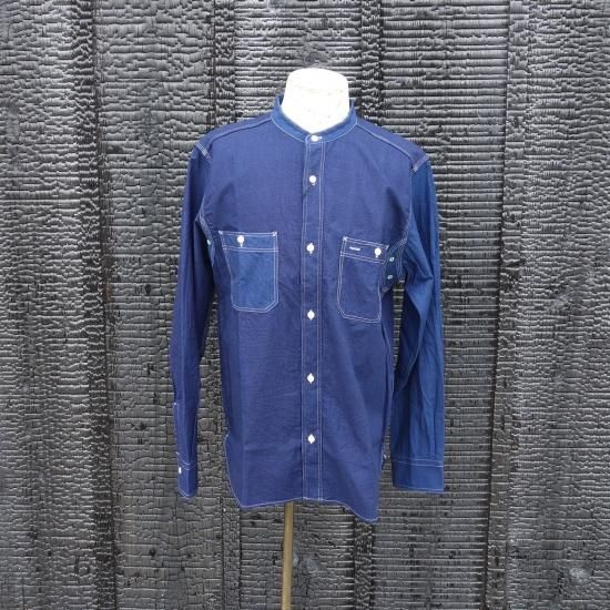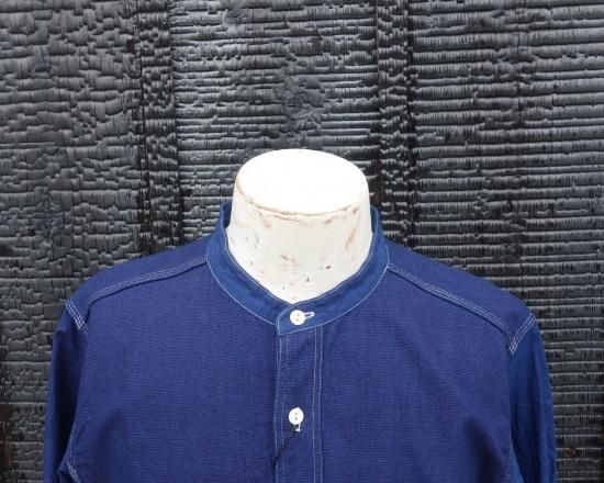 "STAND COLLAR MIX SHIRT-INDIGO DOBBY"(スタンドカラー ミックス シャツ-インディゴ ドビー)