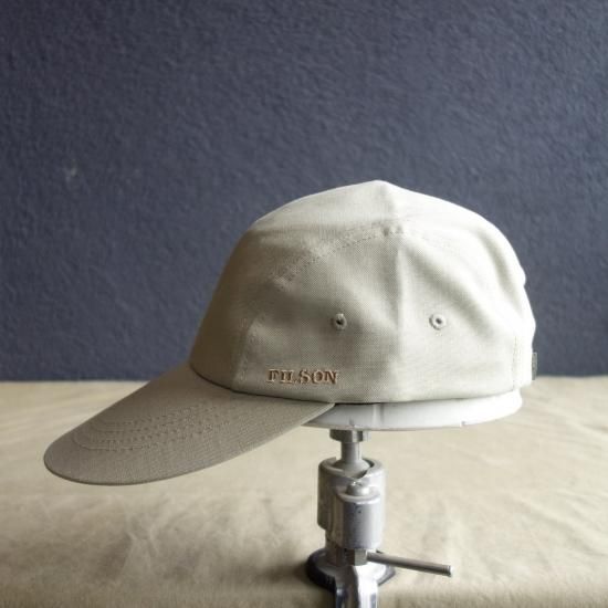 11.5 オンスの丈夫でドライタッチな100% コットン素材を使用し、長いツバが最大の特徴とも言えるキャップです。かものはしのクチバシの様に帽子のツバが長く(約10.5 cmほど)、照りつける陽射しにも対応し、日除け効果の高いキャップで、両サイドにベンチレーションが施され通気性にも富んでいます。バックストラップにてある程度のサイズ調整が可能なのでフリーサイズ(One size)展開となっており、左サイドにはFILSON ロゴ刺繍が入っています。 アウトドアシーンではもちろんですが、街中でも一風変化のあるファッションアイテムとしてカジュアルに活躍してくれそうです。※画像7にある様にさり気なくFILSON ロゴがセットされています。