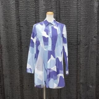 Nigel Cabourn WOMAN "BIG SHIRT CAMO PRINT" Saxe Blue