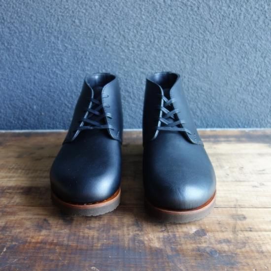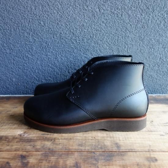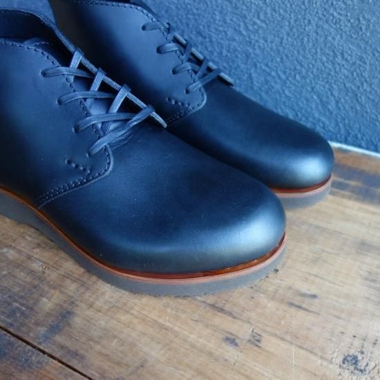 足を包み込むように仕上げるマッケイ製法と足裏の自然な形を成型するダイレクト製法を掛け合わせたSYNERGY CRAFTS製法で作られたスタイルを選ばないシンプルなチャッカブーツです。従来の革靴とは違ったスニーカーのような履き心地を実現しました。革材はオリジナルのタンニンなめし革を使用しています。