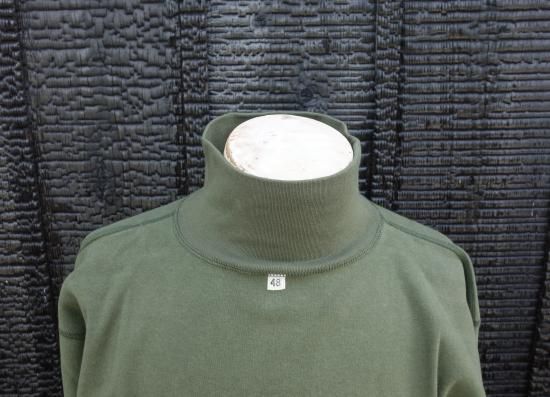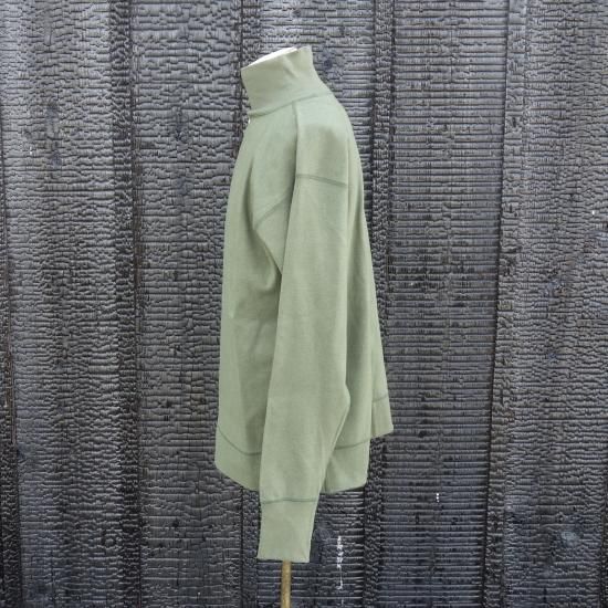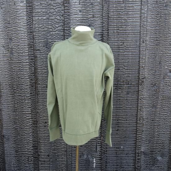 4 WAY その名の通り、前・後・裏・表で着用が可能なハイネックの長袖カットソーです。20番単糸の16GGの高密度フライス編みの生地で、表はどことなくモールスキンのような見た目と触り心地、裏は高密度のコットンニットの様な特徴を持った生地感をしております。極寒の地などを訪れる探検家が着用していたウェアがベースとなっており。「一刻も早く着用しないと死んでしまう」そんな事態を避ける為に考案されたと言われています。大変着心地が良く丈夫な作りで、どの方向でも着用できることから、あらゆるシーンでの活躍が期待できる一着と言えます。