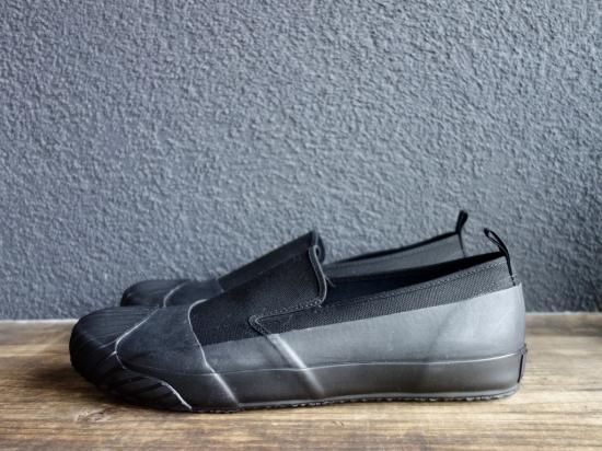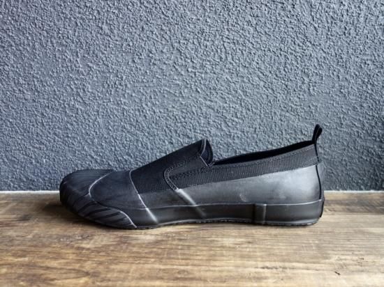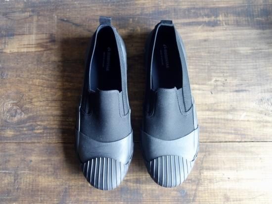 全天候型のスリッポンタイプ。キャンバス地のアッパーにラバーを貼り合わせることにより、晴天の時はもちろん、雨天など足元の状態が悪い場面でも気にすることなく履くことができる仕様。