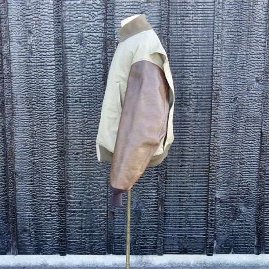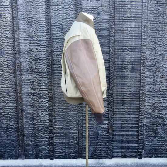 タンカース(戦車兵)ジャケットの身頃ディティールと、A2フライトジャケットの袖、リブのディティールを融合。ファブリックはコットンツイル。