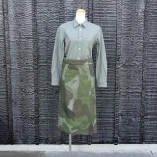 Nigel Cabourn WOMAN "Kilt Skirt-Linen Camo" Dark Olive